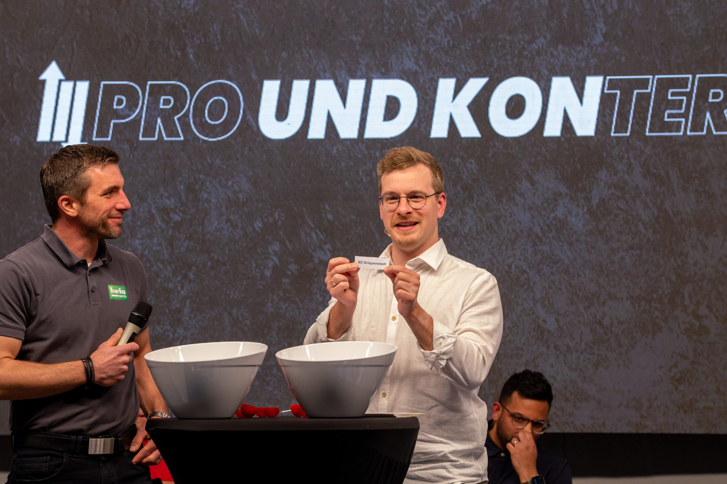 Die Losfee an diesem Abend war Christian Botterbrod. Der ehemalige Schiedsrichter, der seine aktive Karriere letztes Jahr beendete, ist noch in Ottbergen im Verein aktiv und ihm wurde die Ehre zuteil, die Lose zu ziehen. Der Helo Sports-Mitarbeiter erzählte zudem, wie er zu seiner Arbeit bei dem neuen Pro und Konter-Partner gekommen ist und was seine Aufgaben sind.