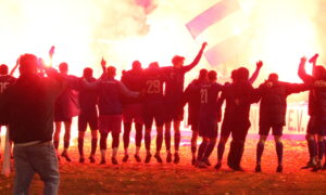400 Zuschauer, viel Pyrotechnik und ein umkämpftes Derby. Der VfL Borsum hat sich am Freitagabend mit 2:1 gegen den Gemeindenachbarn SC Harsum durchgesetzt.
