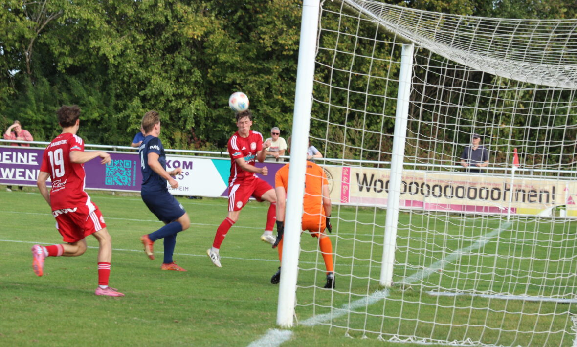Vor einigen Wochen trafen der SV Bavenstedt und der VfR Ochtersum im Bezirkspokal aufeinander. Der SV gewann damals mit 5:2. Am Samstag stand das nächste Derby in der Landesliga auf dem Programm. Wieder setzte sich der SV Bavenstedt durch. Diesmal allerdings ohne große Anstrengung. Das Team von Trainer Michael Jarzombek siegte mit 3:0. In 90 Minuten kamen die Ochtersumer nur zweimal gefährlich vor das Bavenstedter Tor. Niklas Preußners Heber war zu ungefährlich und ein Schuss des eingewechselten Philipp Timkov lenkte Bavenstedts Torwart Jan Arendt zur Ecke. Das verdeutlich das Grundproblem des Aufsteigers: Aktuell sind die Ochtersumer im Angriff viel zu ungefährlich und leicht auszurechnen. Trainer Stefan Staar versuchte es in der ersten Halbzeit abwechselnd mit den Innenverteidigern Paul Emmerling und Christian Engel als Mittelstürmer. Ohne Erfolg. Bis zur Halbzeitpause hatte der Gast nicht eine Chance zu verzeichnen. So wurde VfR-Torwart Kilian Blanke zum besten Germanen. Er parierte gegen Mark Büsing und Sandro-Jose Padial. In der 28. Minute war Blanke machtlos. Eine Flanke von Padial köpfte Bavenstedts Kapitän Tristan Heine zur 1:0-Führung ein.