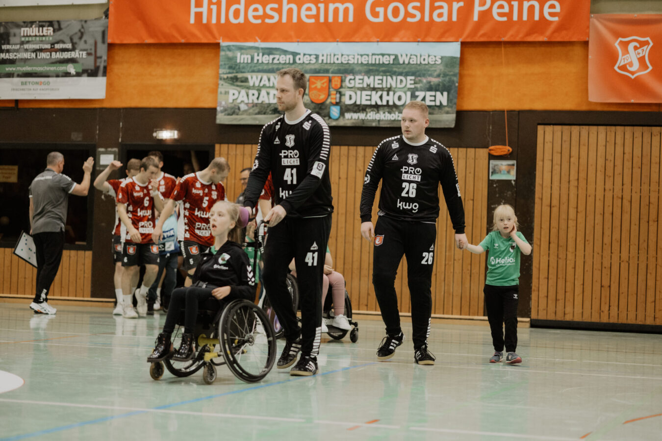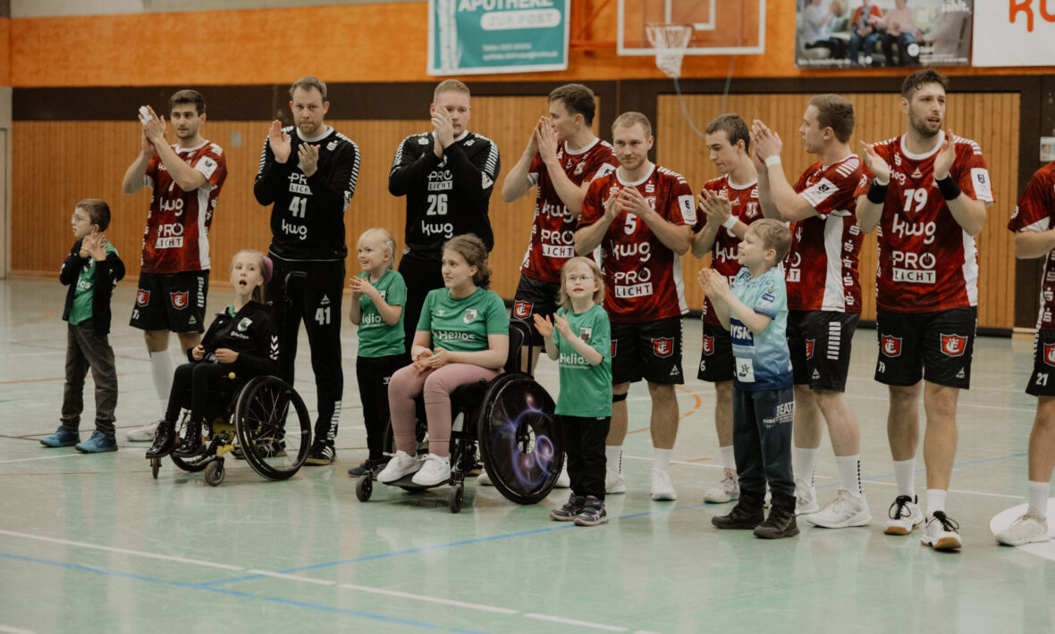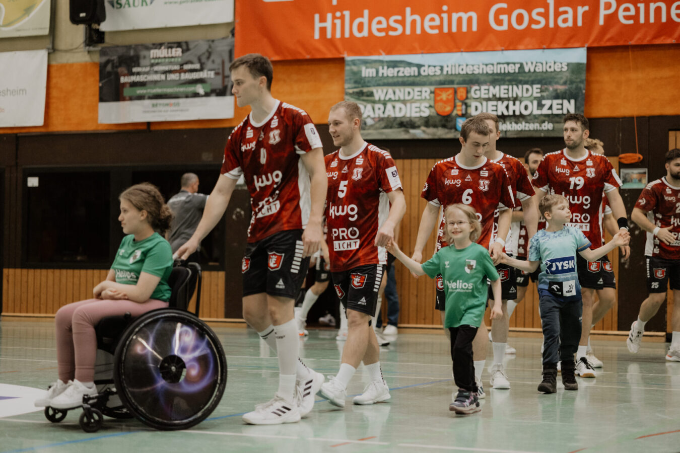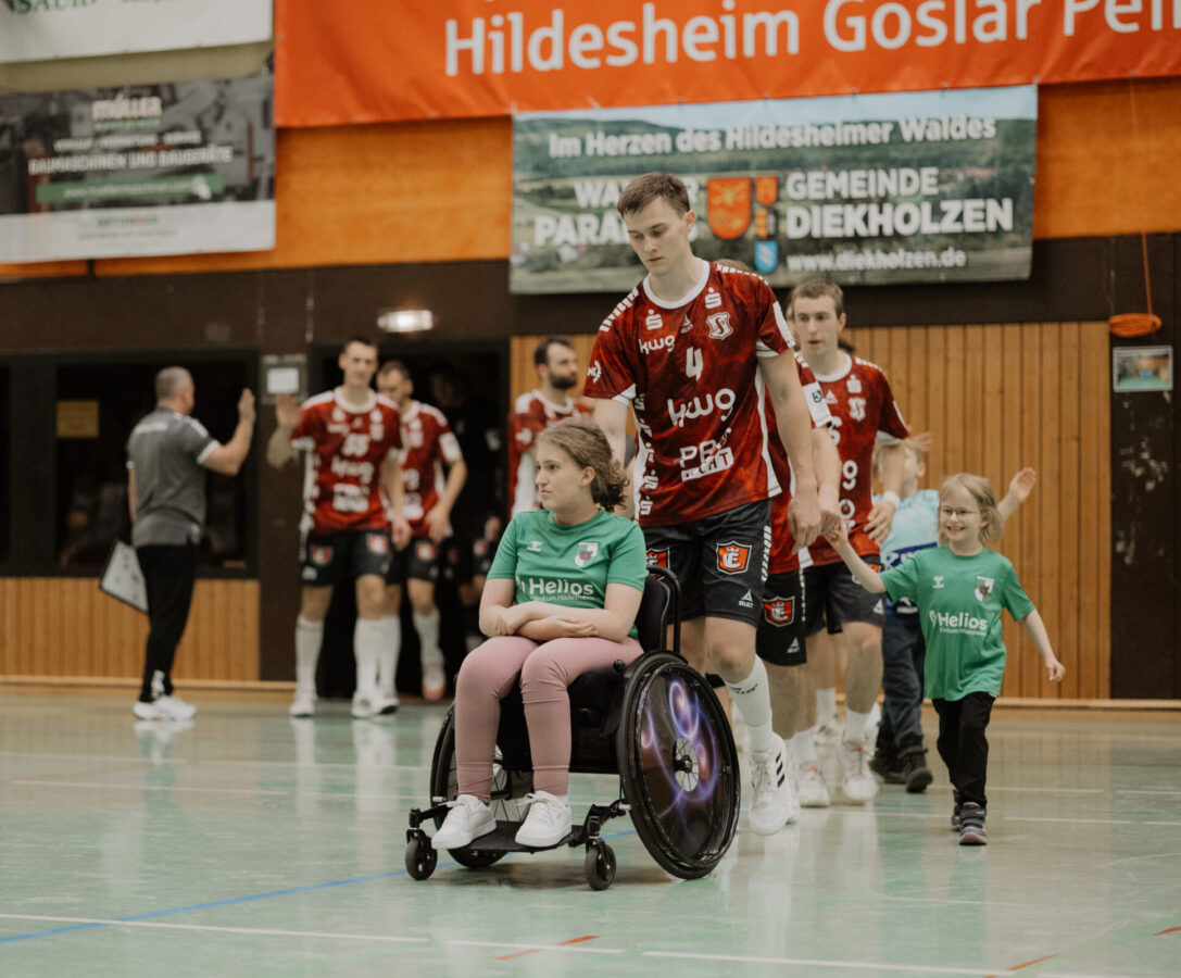 Gemeinsam mit ihren Eltern, Trainerinnen und sogar einem Assistenzhund kamen die Kinder in die gut gefüllte Halle. Bei lauter Musik und großartiger Stimmung nahmen sie an der Seite der Söhrer Spieler an der Einlaufzeremonie teil. Ein emotionaler Moment, der von den rund 400 Zuschauern mit tosendem Applaus gefeiert wurde.
