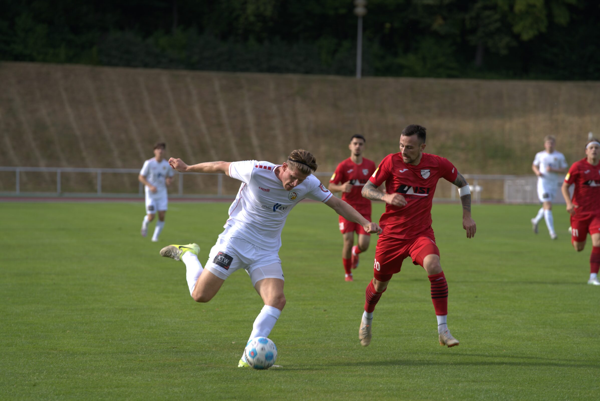 Direkt nach dem Seitenwechsel traf Carlos Christel, der Malina ersetzte, in bester Stürmermanier zum 0:3. Der dritte Stürmertreffer der Hildesheimer an diesem Abend. Da wollte sich der eingewechselte Madhi Biso nicht lumpen lassen. In der 84. Minute traf der vom SV Newroz gewechselte Stürmer zum 0:4. Biso setzte einen Drehschuss aus 15 Metern eiskalt in den Winkel. Die Offensivkräfte zeigten sich absolut treffsicher. Einen kleinen Makel gab es in dem ersten Testspiel dann doch noch. Nach einer Standardsituation ließ der VfV den KSV-Ehrentreffer zu. Daniel Borgardt traf per Kopf nach einer Ecke zum 1:4-Endstand. Auch wenn man Vorbereitungsspiele nicht überbewerten sollte, so war der erste Auftritt der VfVer durchaus ein Mutmacher. Wenn Kitar von Aufbruchstimmung spricht, dann ergibt das durchaus Sinn. „Ich bin mit der Leistung zufrieden. Das Ergebnis ist zweitrangig, die Art und Weise, wie wir gespielt haben, hat mir gefallen“, sagte Kitar.