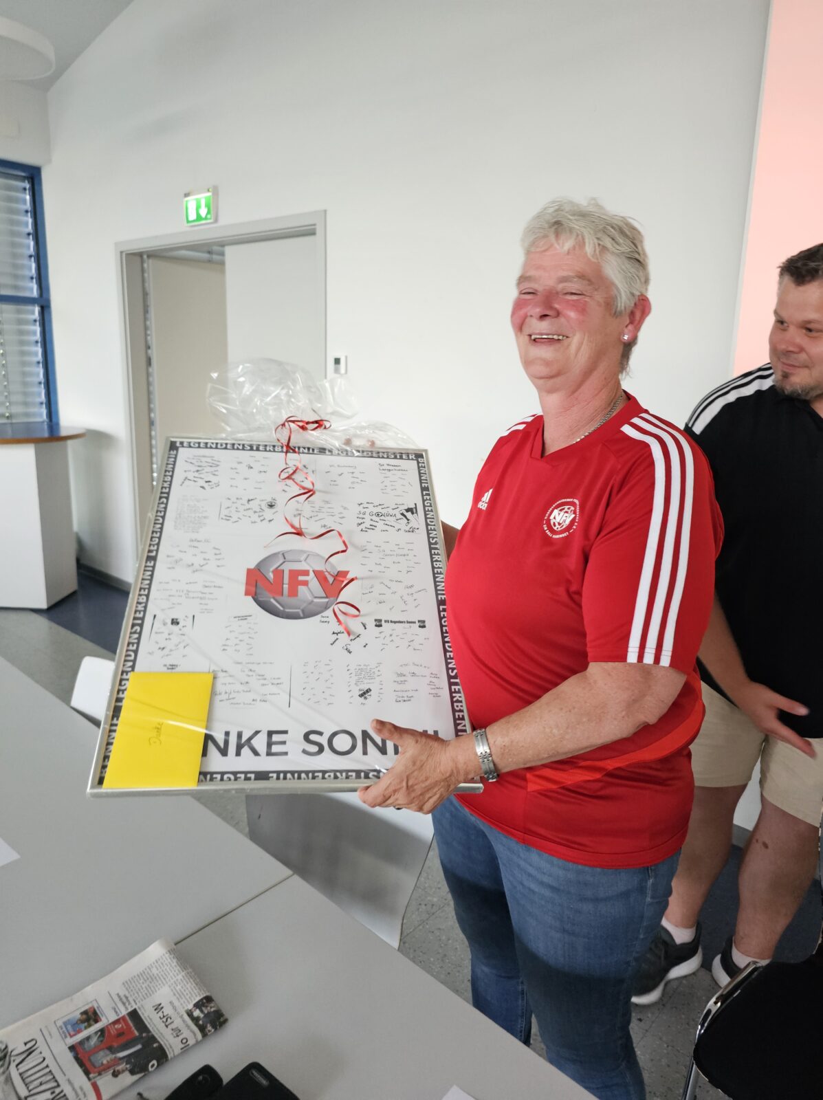Am Ende wurde es emotional. Für Sonja Bukowski war es die letzte offizielle Veranstaltung. Mit großem Dank und stehenden Ovationen verabschiedeten sich „ihre Mädels“, wie sie die Teams stets liebevoll nannte. Als besonderes Geschenk überreichte Dominik Mallon einen großen Bilderrahmen, auf dem alle Spielerinnen der Teams unterschrieben hatten – mit der Aufschrift: „Danke, Sonne“. Sichtlich gerührt versprach sie: „Das bekommt einen Ehrenplatz.“ Die offizielle Verabschiedung folgt beim Kreisfußballtag in Freden.