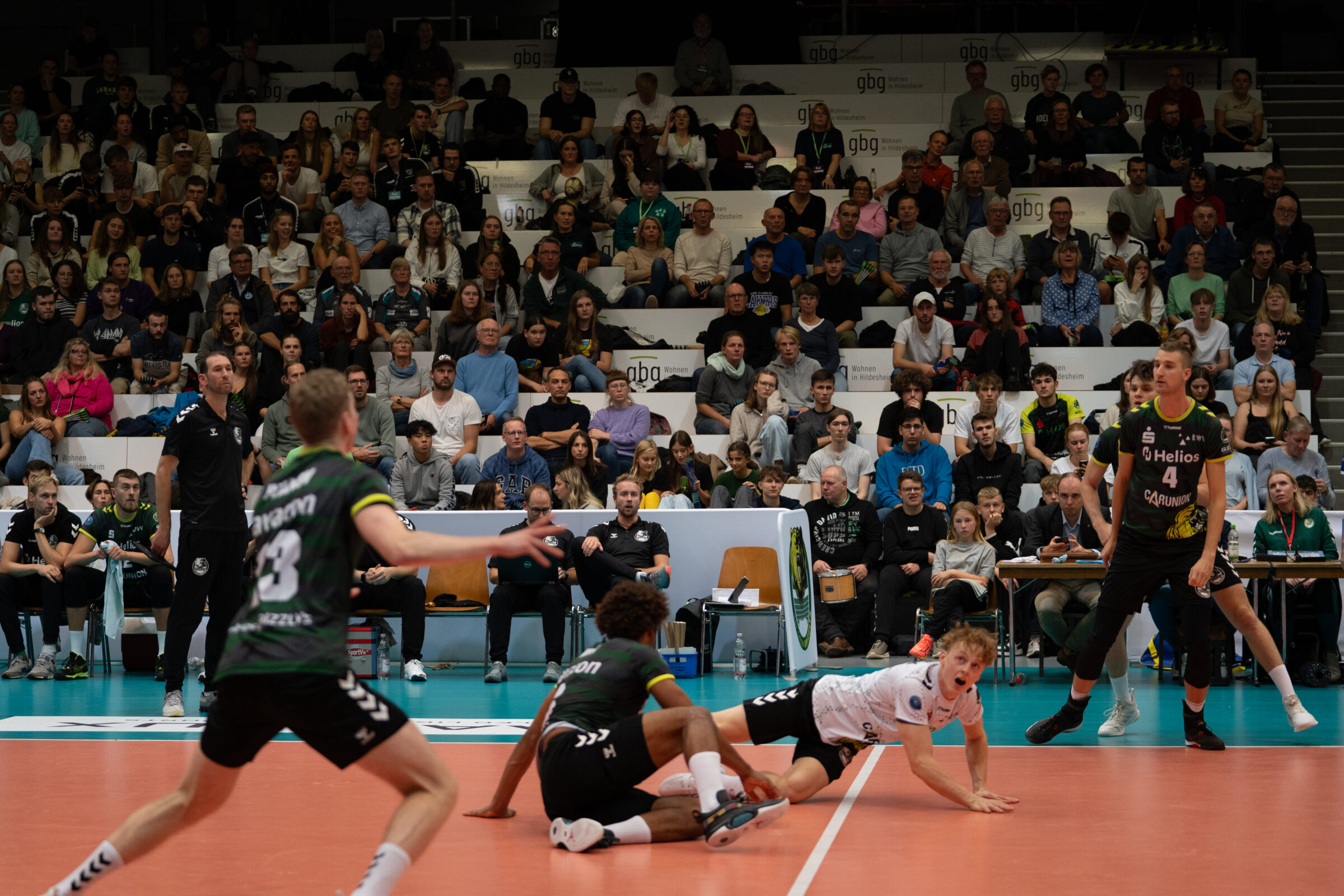 Am Freitagabend absolvierten die Helios GRIZZLYS Giesen ihr zweites Spiel des Tages. Im Viertelfinale traf das Team von Itamar Stein auf die Powervolleys Düren rund um ihre Stars Michael Andrei und Sebastian Gevert.