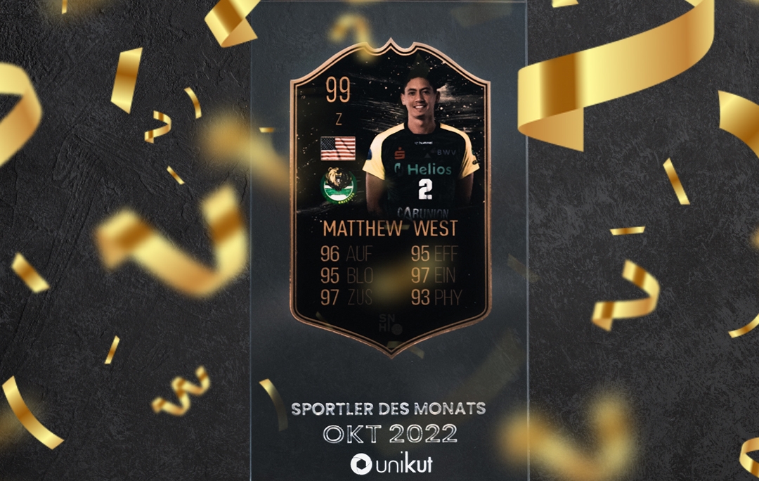 Matthew „Matt“ Alvaro West, Zuspieler beim Volleyball Bundesligisten Helios GRIZZLYS ist unser Sportler des Monats Oktober. Der 29-Jährige ist nach der kurzfristigen Leihe sofort eingeschlagen und ist eine enorme Hilfe für das Team der GRIZZLYS. Mit neun Punkten aus den vier Spielen im Oktober ist das Team von Itamar Stein äußerst erfolgreich in die Saison gestartet. Großen Anteil daran hat auch West, der die Angreifer Colito, Mantha,Iribarne, Wagner, Seybering, Köykkä, Günthör, Karlitzek und Baxpöhler mit schönen Zuspielen in Szene setzte. Zudem überzeugte West auch bei seinen Aufschlägen.