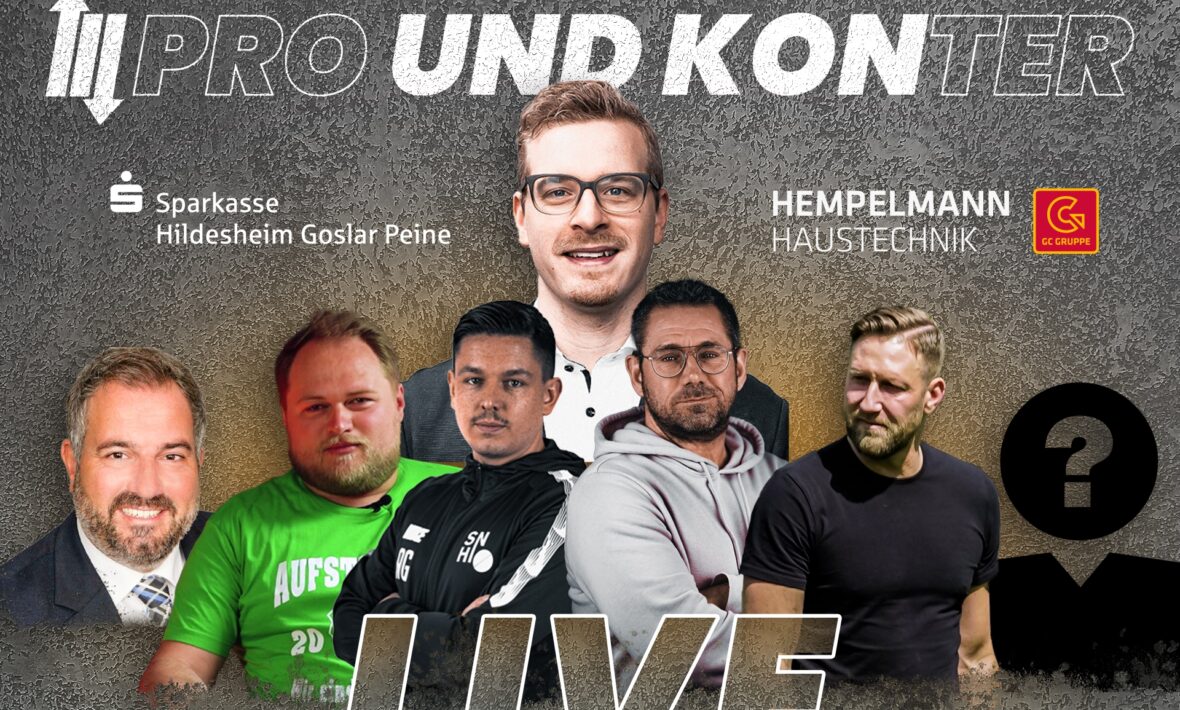 Bereits am kommenden Montag findet die zweite Folge unseres Formats ''Pro und Konter" statt, die LIVE übertragen wird. Ab 19:00 Uhr wird Moderator Kevin Remmers mit seinen Gästen über Fußball in Hildesheim reden. Was gilt es vorab zu wissen?