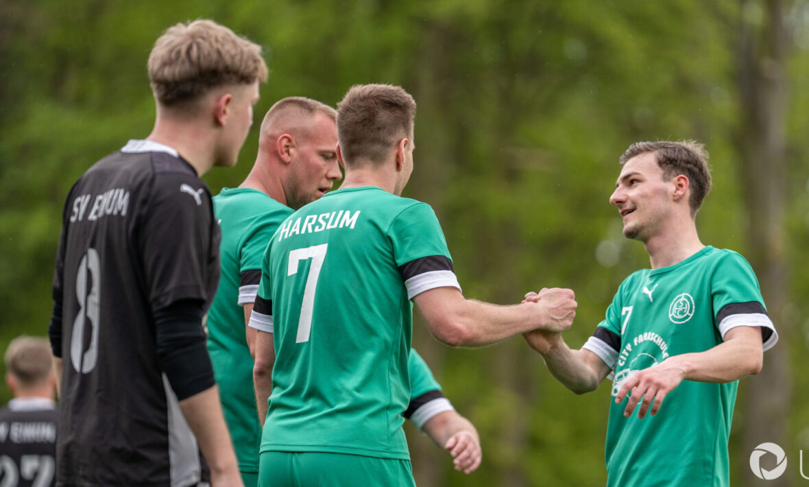 Gegen tief stehende Einumer, die nur mit elf Spielern angereist waren, startete Harsum druckvoll. Nach einem Eckball von Tino Schulze brachte Philipp Weiß die Gastgeber früh in Führung (8.). In der Folge verflachte die Partie, Harsum kam zwar zu einigen Halbchancen, nutzte diese jedoch nicht. Ab der 31. Minute musste Einum nach einer verletzungsbedingten Auswechslung von Joos Gebhard Bruns in Unterzahl weiterspielen. Kurz nach der Pause erhöhte Harsum: Eine Flanke von Christopher Grützner verwertete Luca Aselmeier mit dem Außenrist zum 2:0 (47.). Nur wenige Minuten später fiel erneut nach einer Ecke das 3:0. Tim Wohlfahrt fand Aselmeier, der vom Sechzehner ins lange Eck traf (54.). Von Einum kam offensiv kaum noch etwas. Torhüter Dustin Sauermann verhinderte mit mehreren starken Paraden einen höheren Rückstand. Den Schlusspunkt setzte Felix Lassan nach Vorarbeit von Conrad Rother zum 4:0 (79.). „Respekt an Einum, die mit elf Leuten hierhergekommen sind und dann lange zu zehnt weiterspielt haben. Wir freuen uns über Platz fünf! Die erste Halbzeit war schlecht, die zweite Halbzeit war echt gut“, sagte Harsums Teammanager Sven Salchow.