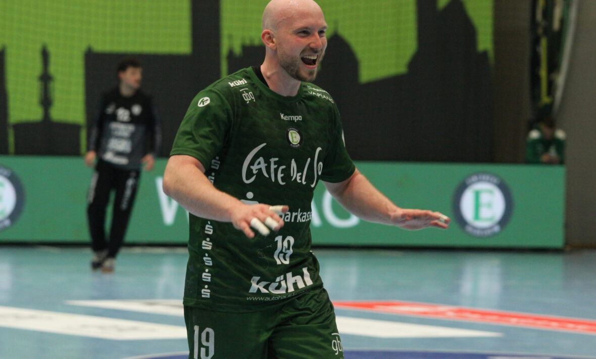 Die Hausherren hatten im Angriff durch den variablen Rückraum immer wieder gute Durchbrüche und so kam HC in den ersten 30 Minuten auf starke 20 Tore. Insbesondere Jakub Tonar (Titelfoto) war von der Braunschweiger Abwehr nicht zu stoppen. Der Tscheche, der ein überragendes Spiel ablieferte, kam auf insgesamt zwölf Tore. Tonars Dutzend sollte am Ende dafür sorgen, dass die Eintracht ihren Vorsprung nicht aus der Hand gab. Allerdings verpassten es die Hausherren zum Ende der ersten Halbzeit den Fünf-Tore-Vorsprung aus der 17. Minute auszubauen. Nach dem 20:15 durch Luis Rodrigues (29:08 Minuten) kassierten die Hildesheimer noch zwei einfache Gegentore und so stand es 20:17 bei der Halbzeitsirene. Damit waren die Gäste noch im Spiel.