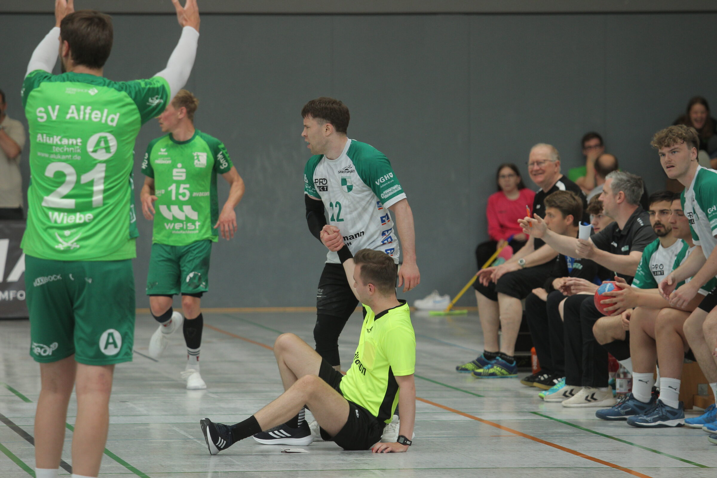 Überhaupt hatten die Gäste immer wieder gute Antworten. Für einen besonderen Moment sorgte Alfelds Fynn Wiebe. Beim Stand von 8:9 holte sich Himmelsthürs Simon Oertel den Ball und setzte zum Tempogegenstoß an. Dabei kollidierte der Kapitän mit einem der Schiedsrichter, sodass der Ball im Seitenaus landete. Regeltechnisch gab es zu Recht Einwurf für die SV. Wiebe spielte den Ball aber fair zu den HImmelsthürern zurück.