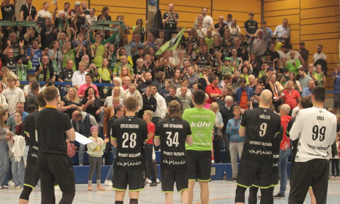 Die Handballer von HC Eintracht Hildesheim haben das Hinspiel in der Aufstiegsrelegation beim TV Gelnhausen mit 27:30 verloren. Damit müssen die Hildesheimer am kommenden Sonntag (17 Uhr) mit vier Toren Unterschied gegen den Zweiten der Süd-West-Staffel gewinnen um das Finale zu erreichen. In der altehrwürdigen Rudi Lechleidner-Halle in Gelnhausen fand Eintracht nur sehr schwer ins Spiel. Kapitän Lothar von Hermanni verwarf gleich zu Beginn zwei Siebenmeter und die Hildesheimer Torleute Leon Krka und später Jan Wesemann kamen nicht an das Niveau der Gelnhausener Keeper Daniel Drozdz und Alexander Bechert heran.