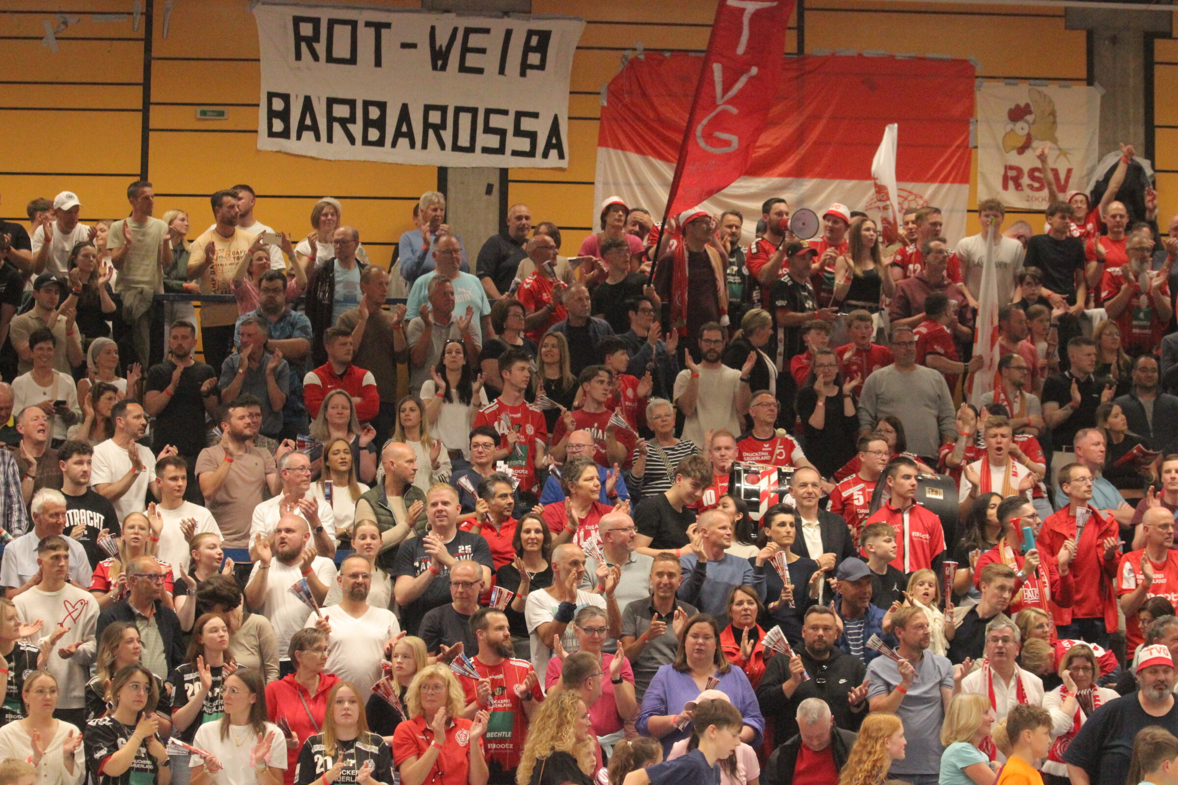 Weil die Gäste zunächst auch noch einige technische Fehler einstreuten, ging der TV mit 13:7 in Führung (25.). Bis zur Halbzeitpause konnten die Einträchtler den Rückstand auf 11:15 verkürzen. In der Halbzeitpause hatte Trainer Deutsch scheinbar die richtigen Worte gefunden. Sein Team war in der Abwehr noch stabiler als in der ersten Halbzeit. Matteo Ehlers, Luca Hopfmann und Philipp Wäger sorgten für drei HC-Tore in Folge zum 15:14 (35.). Die Gäste waren wieder im Spiel und es schien so, als würde die Hildesheimer das Spiel komplett drehen können. In der 43. Minute brachte Jakub Tonar die Gäste mit 21:20 in Führung. Jetzt waren kurzzeitig nur die gut 100 Eintracht-Fans zu hören. Jetzt stand das Spiel auf des Messers Schneide. Mal führte Eintracht, mal der TV. In der 52. Minute erzielte Lukas Quedenbaum, der keine gute Trefferquote hatte, die 25:23-Führung für die Eintracht.
