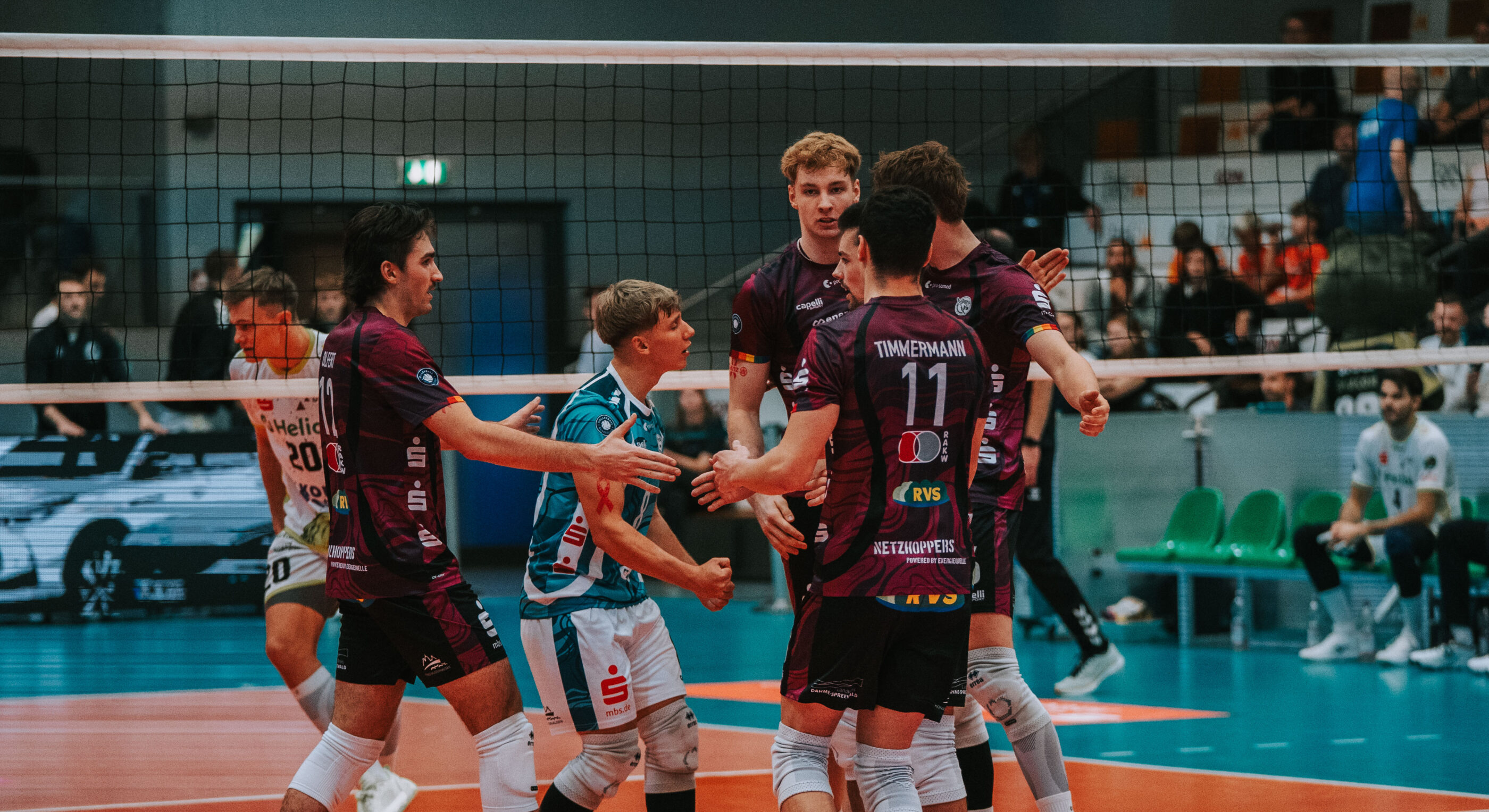 Beim zweiten Spiel am Samstag in der Sparkassen-Arena Hildesheim standen sich die Energiequelle Netzhoppers KW und die gastgebenden Helios GRIZZLYS Giesen gegenüber. Die gut gefüllte Halle erlebte einen ausgeglichenen Start beider Teams, der durch gutes Stellungsspiel in der Feldabwehr geprägt war (12:10). Die Netzhoppers konnten den leichten Vorsprung ausbauen und GRIZZLYS-Chefcach Itamar Stein reagierte beim Stand von 17:13 mit einer Auszeit. Doch KW arbeitete konsequent im Block und stellte auf 22:16. Lovis Homberger führte sein Team mit einem Ass zum Satzball, den Theo Timmermann über die Außenposition nach einem weiteren druckvollen Aufschlag verwandelte.